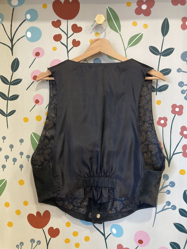 Gilet in pelle scamosciata con fodera a fantasia (abbottonatura da uomo, ma ottimo anche su un fisico femminile)