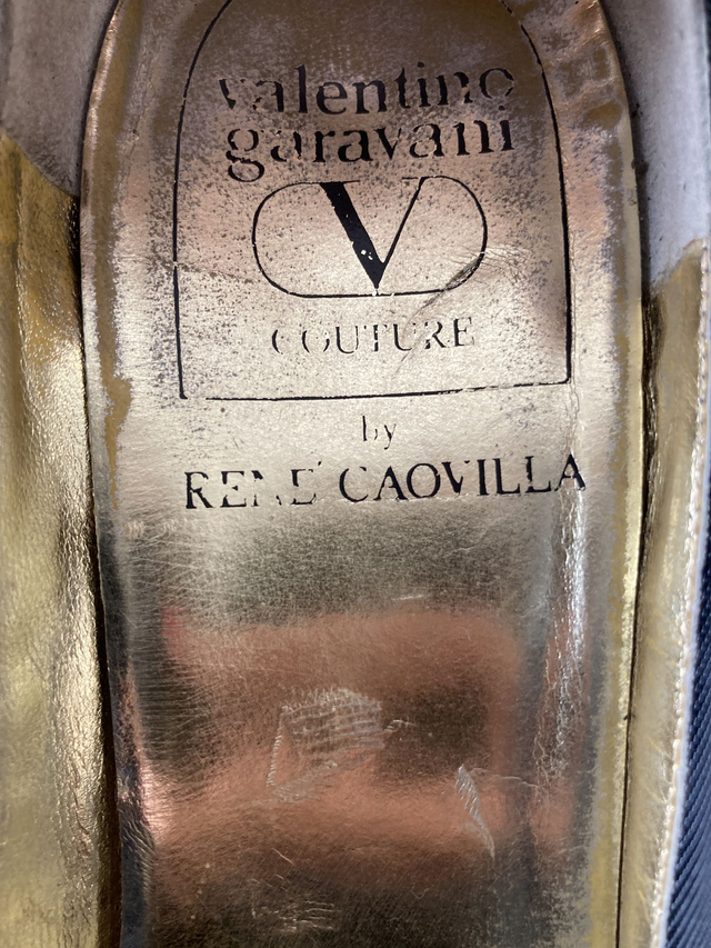 Scarpe Valentino Garavani Couture by René Caovilla in pelle e pizzo blu Made in Italy