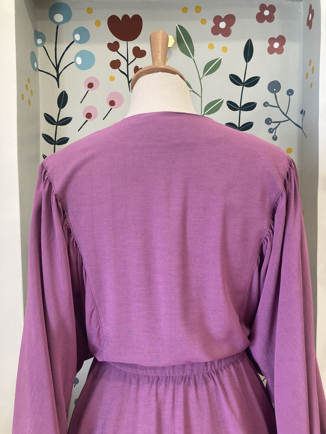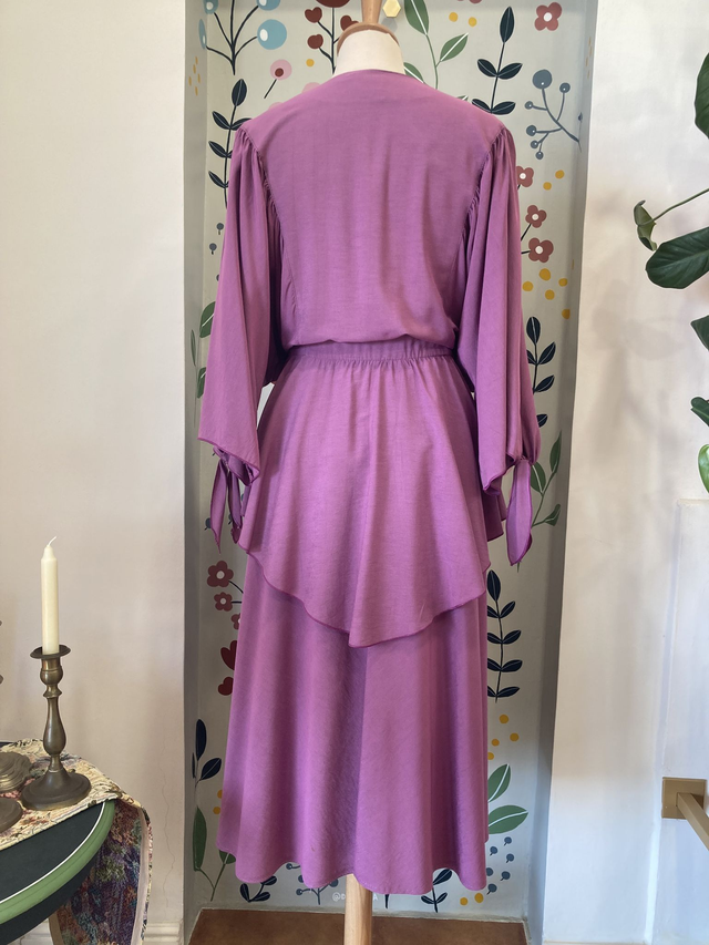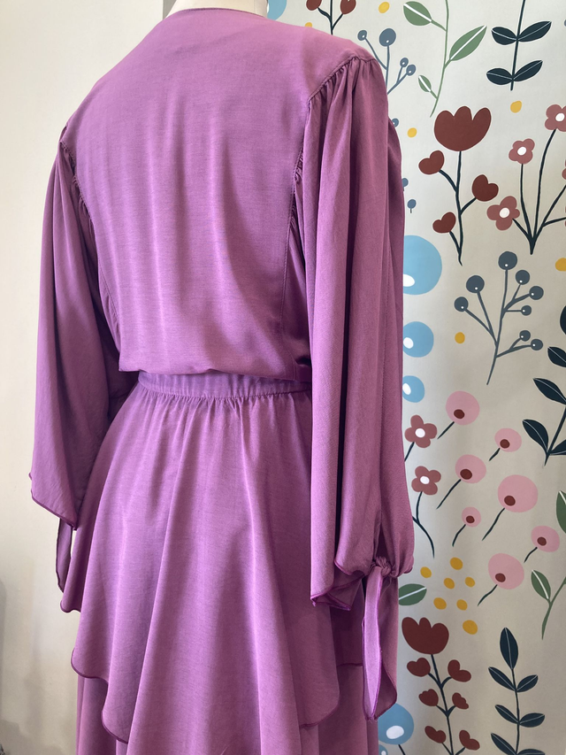 Abito Viola dal taglio romantico con maniche a pipistrello e volant in vita